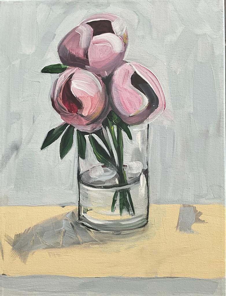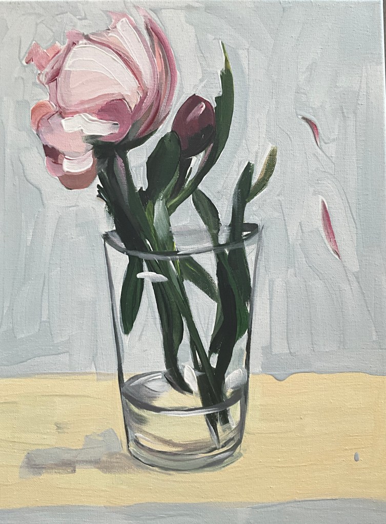 Jeg prøvede mine små blomstermalerier af på udstillingen. Det er ikke alle, som er på udkig efter det helt store maleri. Så derfor var det rart at opleve mange købte et af de noget mindre blomstermalerier. Dem skal jeg vist have lavet lidt flere af til næste udstilling.